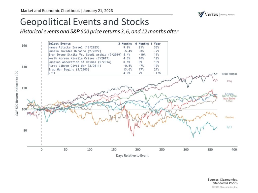 The arrest of Venezuela’s president represents a significant geopolitical development with humanitarian and regional implications. However, history shows that portfolios built around long-term financial goals can navigate geopolitical uncertainty.