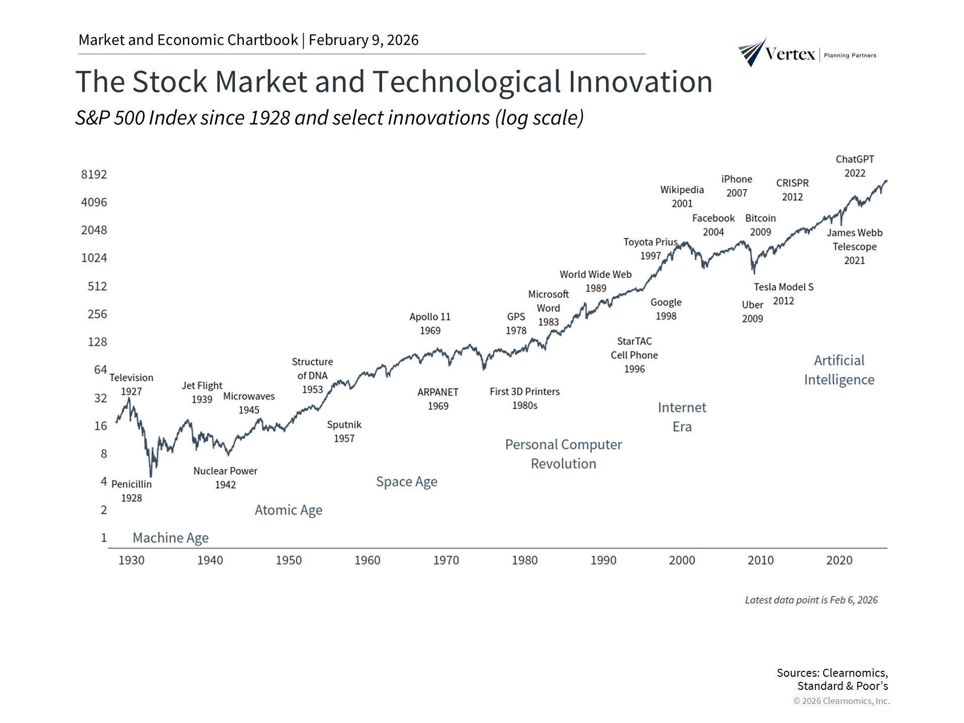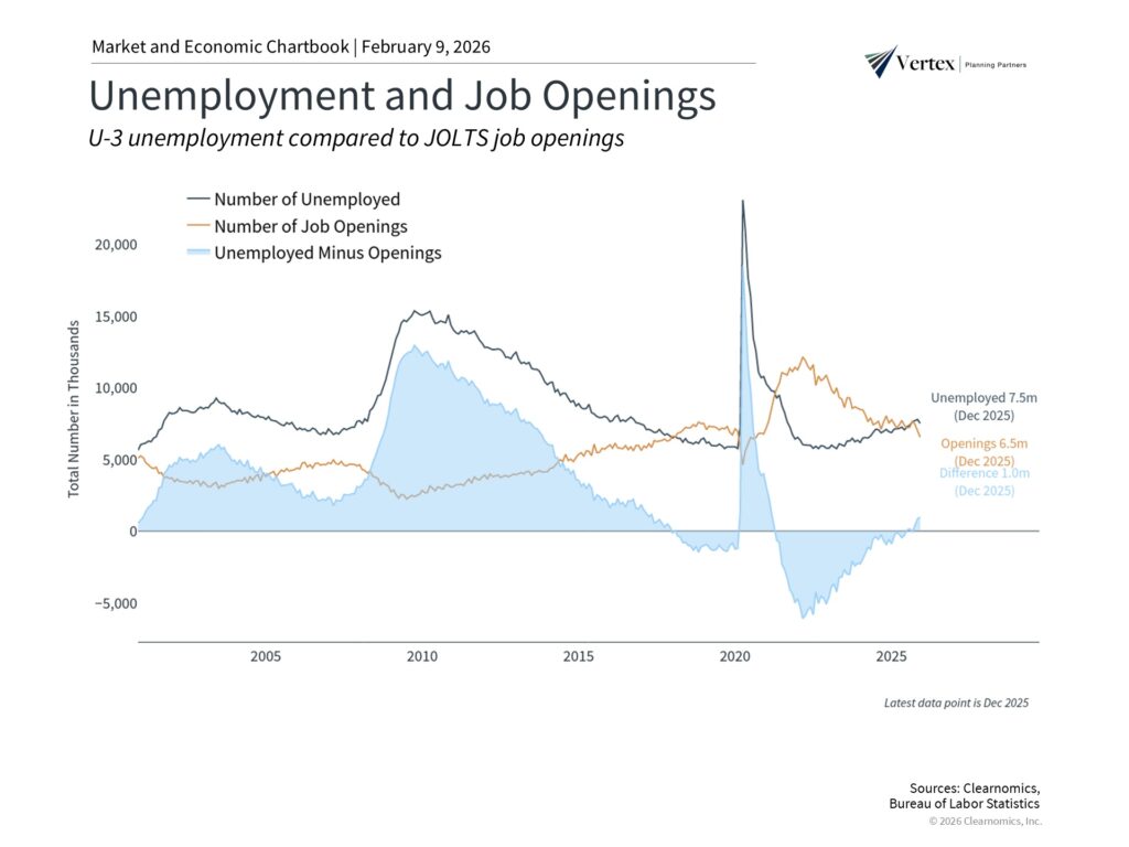Ironically, this occurred almost exactly one year after the “DeepSeek moment” in January 2025, when a Chinese AI company purportedly showed that AI models could be built at a fraction of the cost. In both cases, markets re-evaluated the winners and losers of technological change but also rebounded quickly once the dust settled. For investors, this is a reminder that maintaining a long-term perspective is important as the market shifts between the opportunities from innovation and the challenges of disruption.