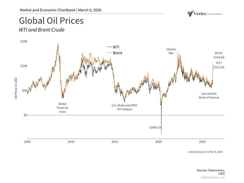While the conflict in Iran has pushed oil prices above $100 and created volatility, financial markets and the economy have historically adapted to supply shocks. Investors should maintain perspective, stay diversified, and continue to focus on their long-term financial goals rather than reacting to daily geopolitical headlines.