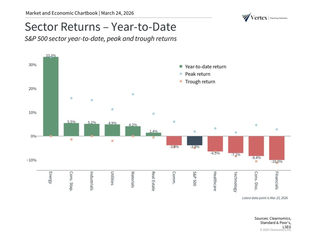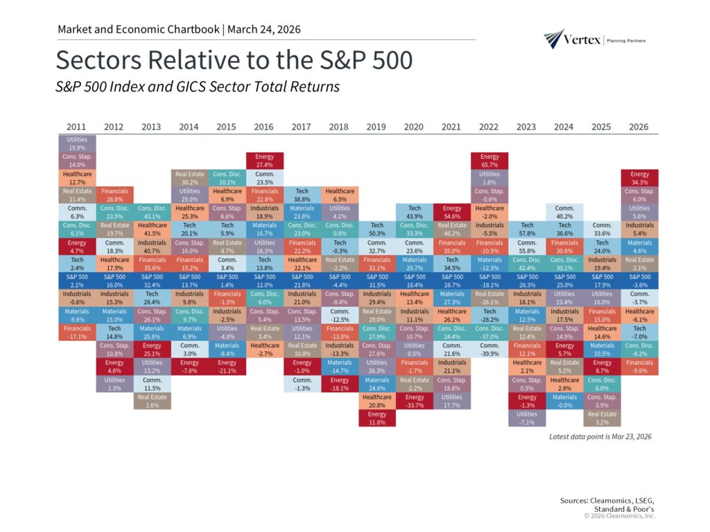 When investors think about the stock market, they tend to focus on broad indices like the S&P 500 or Dow Jones Industrial Average. While this is a natural starting point, it’s often helpful to look one level deeper at the sectors within each index. For instance, the 11 sectors that make up the S&P 500 each have unique characteristics and can behave differently based on economic conditions and geopolitical developments. Understanding these dynamics is important for portfolio construction, diversification, and long-term financial planning.