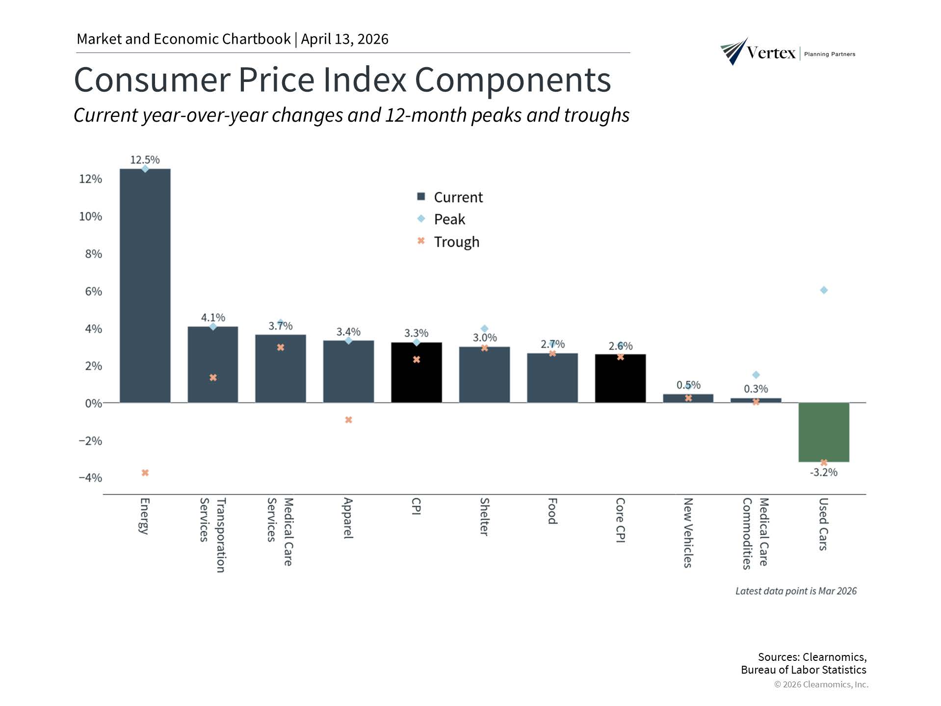 What the CPI report also shows is that higher energy costs have not yet spread to other important consumer categories. Core CPI, which excludes food and energy costs, rose only 2.6% year-over-year, which was below consensus expectations and only slightly above the prior month’s 2.5%. An even narrower measure that also removes housing costs, sometimes referred to as “supercore” inflation, rose only 2.3%.